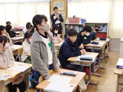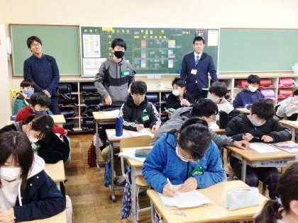 6年3組が中学校教員の授業を受けている様子です。
