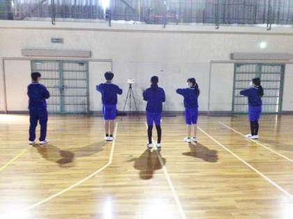 13学級は、体育の「ダンス」の授業の様子です。動画を見ながら、繰り返し練習を行っていました。次の授業がいよいよ発表会です。