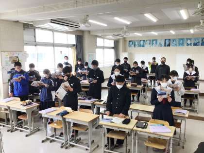 21学級は、音楽の「サンタ ルチア」の授業の様子です。旋律の特徴を感じ取りながら歌っていました。