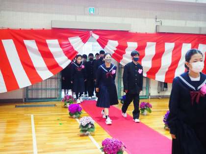 ※保護者とともに記念撮影を行います。(1組から行う予定です)記念撮影後、生徒は教室に移動し、学級活動を行います。保護者の皆様も教室に移動し、お子様の様子を見ていただいても大丈夫です。