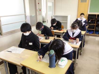 22学級の朝の会の様子です。地区集会の場所を確認していました。