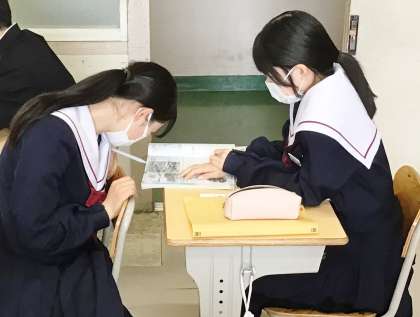 33学級は、社会の「第一次世界大戦」の授業の様子です。第一次世界大戦で新しく使われた武器をデジタル教科書の映像や教科書の資料を見ながら確認していました。