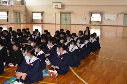 本日3時間目、豊田市交通安全学習センターの方が2名来校し、1年生に交通安全についての学習会を行いました。自転車を運転する際に、交通ルール違反が事故につながりやすいことやヘルメットの重要性を映像で確認したり、自転車の安全の乗り方について、生徒が実際に自転車を運転する場面をもとに考えたりと、安全について深く学ぶことができた講習会となりました。