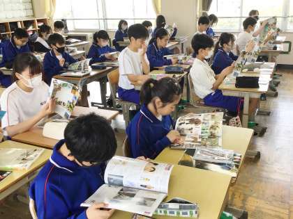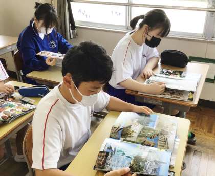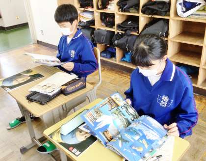 13学級は、美術の「授業開き」の授業の様子です。資料集を見ながら、作品のイメージを膨らませていました。「私は絵を描くのが大好きだから、美術の時間が楽しみです」と嬉しそうに話しかけてくれる生徒もいました。積極的に取り組み、自分の力をどんどん伸ばしていきましょう。