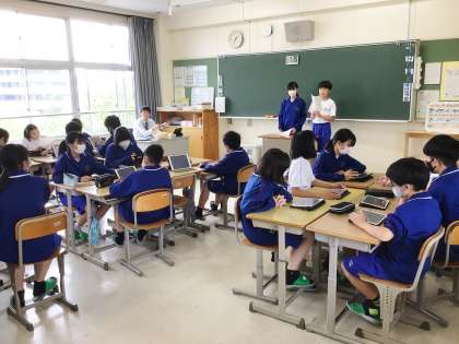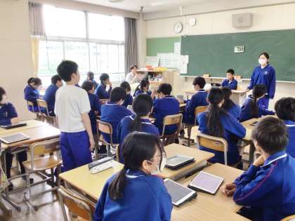 5限に、前期生徒集会を行いました。学級の各委員会の生徒が、タブレット画面に映し出された活動内容等を伝達しました。活動内容に質問がある場合は、積極的に挙手し聞いていました。委員会の活動を活発に行い、学校の活力を高めてくれることを期待しています。