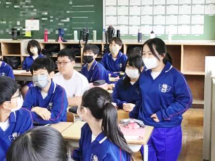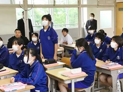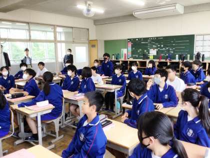 21学級は、国語の「枕草子」の授業の様子です。作者の見方・感じ方を読み取るために、自分たちが抱いている四季のイメージについて発表していました。