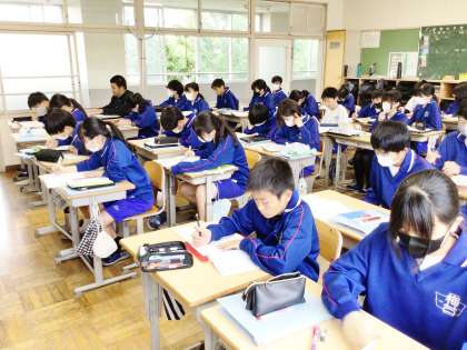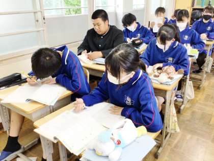 21学級は、数学の「式の計算」の授業の様子です。章末問題を解いていました。次の授業は、いよいよ単元テストです。学習の成果をすべて発揮しましょう。