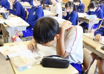 22学級は、社会の「貿易の振興から鎖国へ」の授業の様子です。資料「アンコールワットの壁に書かれた日本語」を読み取っていました。発言も積極的に行っていました。