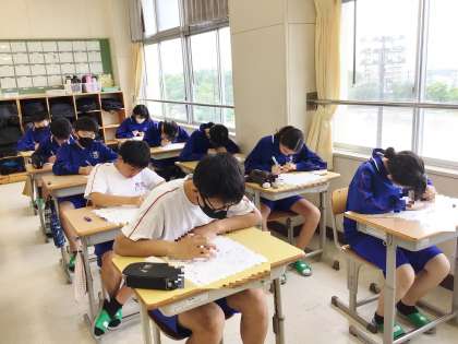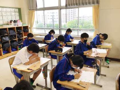 14学級は、国語の「シンシュン」の単元テストの様子です。一問一問集中して解いていました。