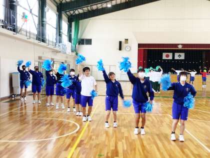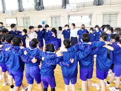 練習前に団結を高めるために全員で円陣を組んでいました。