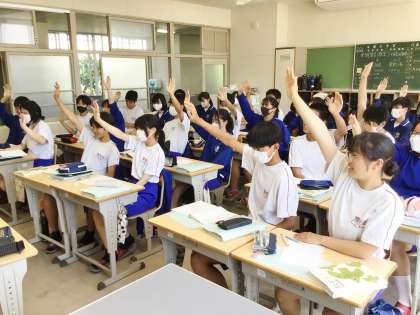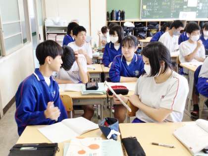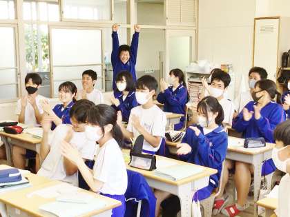 5/17(金) 授業の様子です(3年生) 2 公開日 2024/05/17 更新日 2024/05/17 お知らせ 32学級は、数学の「平方根」の授業の様子です。前時の授業で学習した内容を問題を解きながら確認していました。正解した生徒がガッツポーズをして喜んでいました。挙手する生徒も多く、授業に活力を感じました。
