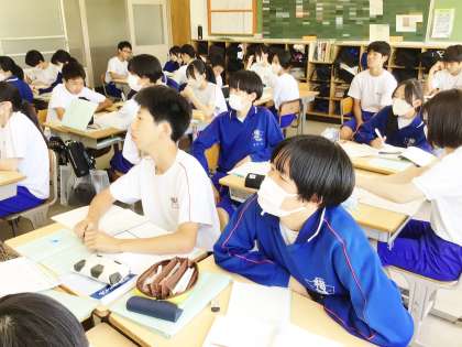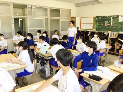5/17(金) 授業の様子です(3年生) 3 公開日 2024/05/17 更新日 2024/05/17 お知らせ 33学級は、数学の「平方根」の授業の様子です。平方根の大小について練習問題を解きながら、解き方・考え方の理解を深めていました。