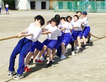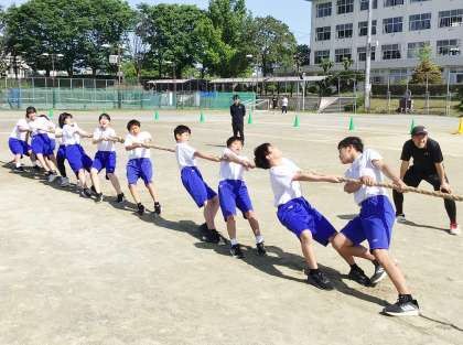 1年生の「Tug of War(綱引き)」の予選会の様子です。