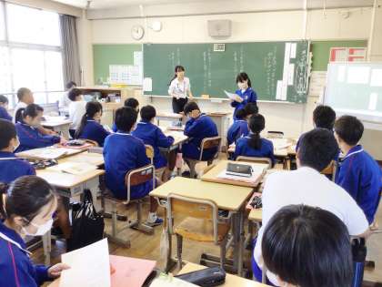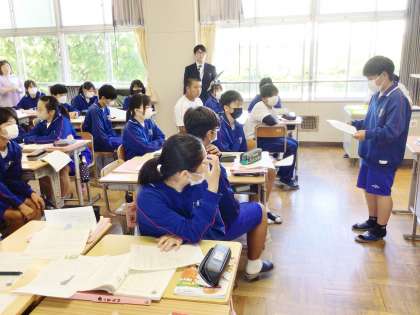 生徒たちは、班での話し合いでは積極的に考えを出し合ったり、全体の発表では班で考えた考えを堂々と発表したりと、意欲的に学習に取り組んでいました。
