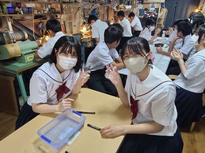 江戸切子の制作の様子です。