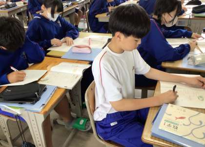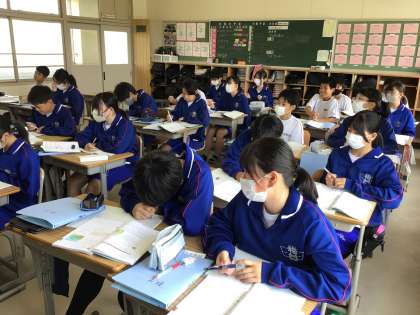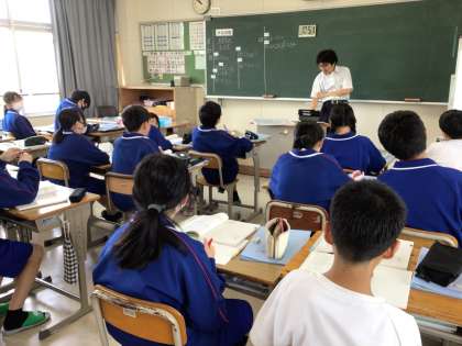 6/6(木) 授業の様子です(1年生) 1 公開日 2024/06/06 更新日 2024/06/06 お知らせ 1年生の授業の様子です。 11学級は、数学の「文字式のルール」の授業の様子です。教科書に載っている様々な問題を解き、全体で意見を共有することで、文字と数字が混ざった式をどのように表すかについて学びました。 1年
