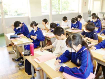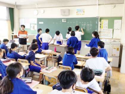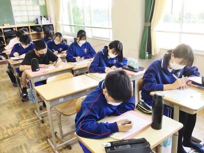 23学級は、国語の「熟語の構成」の授業の様子です。練習問題を解いていました。解き終わった後は自分の考えを黒板に書き、確認していました。