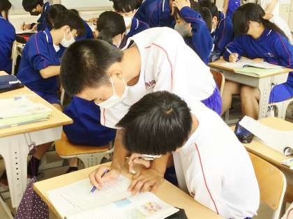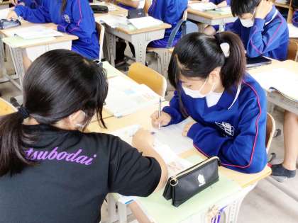 6/13(木) 授業の様子です(3年生) 2 公開日 2024/06/13 更新日 2024/06/13 お知らせ 32学級は、英語の「Unit2」の授業の様子です。本文の内容から出題されている問題を解いていました。疑問点があると、級友や教科担任に聞いて、確認していました。