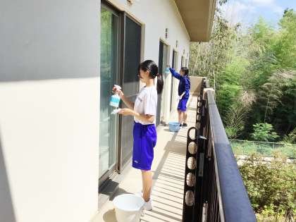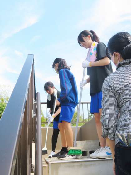 15日(土)にボランティア部が地域の養護老人ホーム若草苑で施設の清掃を行いました。梅坪台地区の民生委員さんと共に、ホームの窓拭きや床の掃き掃除に意欲的に取り組みました。活動後、「クモの巣がたくさんあって大変だったけど、楽しくできた」「時間がもっと欲しかったな」など、活動に前向きな声が多く聞かれ、嬉しくなりました。