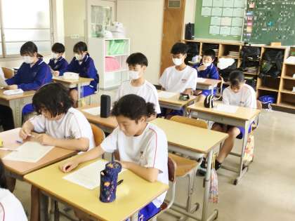 合唱の候補曲を聞いている13学級の様子です。