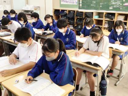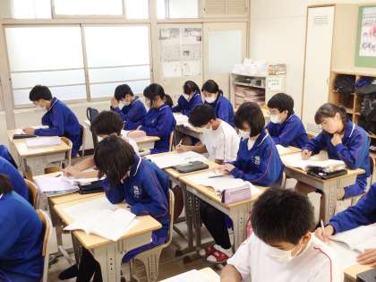 合唱の候補曲を聞いている32学級の様子です。