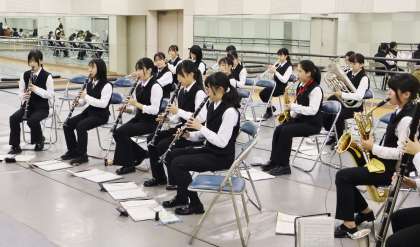 吹奏楽部のリハーサル室での練習の様子です。(本番は撮影不可となっています)