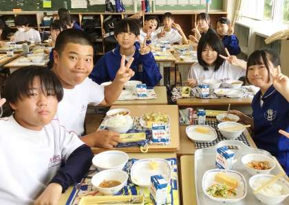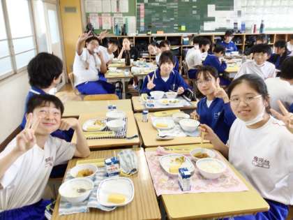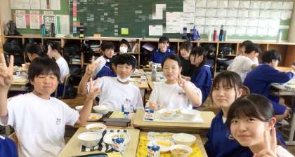 2年生の給食の様子です。本校では4月よりグループ会食を行っています。コロナ禍前のように会話が弾み、笑顔が溢れていました。