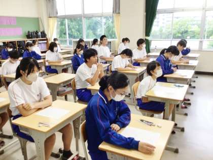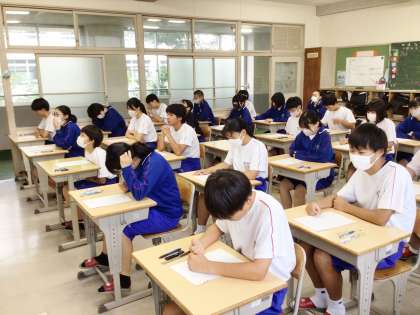 問題用紙が配られた後、開始を待つ31学級の様子です。