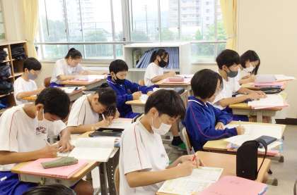 12学級は、国語の授業の様子です。国語ワークや漢字ワークを進めながら、今までの学習を復習していました。