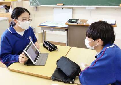 2年生は、6月に行った職場体験について、「行った内容」「学んだこと」などをパワーポイントでまとめました。本日、パワーポイントでまとめた内容をお互いに聴き合っていました。発表が終わると、自然と拍手が湧き起っていました。パワーポイントの内容を見せてもらいましたが、とてもわかりやすくまとめていて、すごいと思いました。