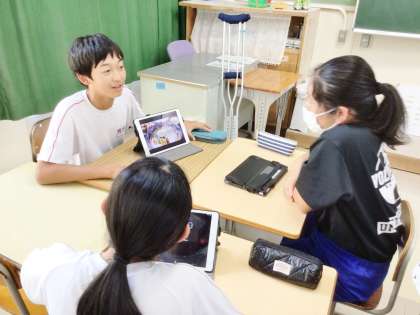 7/18(木) 職場体験についてまとめたことを聴き合っていました(2年生) 1