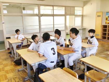 野球部の活動の様子です。新チームの目標を考えていました。