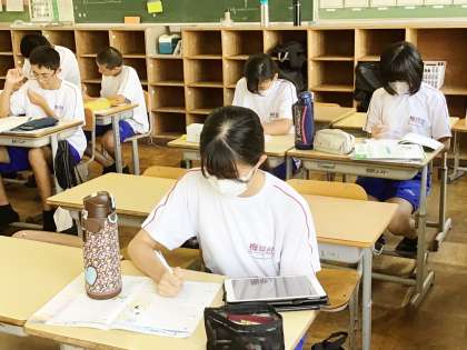 サマーチャレンジに参加し、集中して学習に取り組んでいる生徒の様子です。