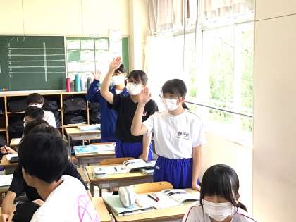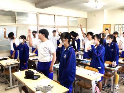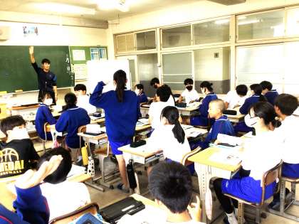 22学級は、体育の保健「運動やスポーツの学び方」の授業の様子です。クイズ形式で出される問題を楽しく解きながら、理解を深めていました。