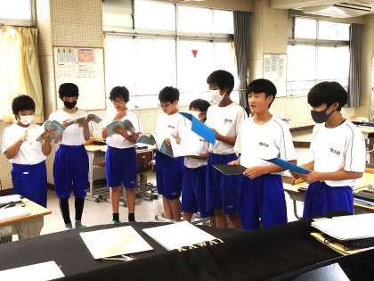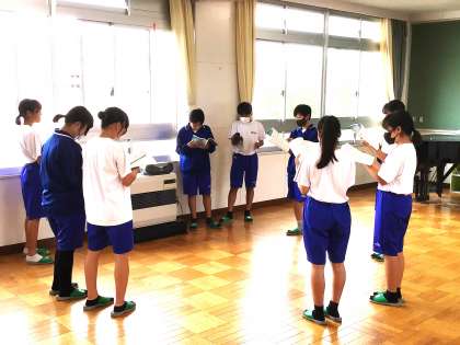 12学級は、音楽の授業の様子です。合唱コンクールで歌う「マイ バラード」をパートに分かれて練習を行っていました。パートリーダーから的確なアドバイスが出ていて「すごい」と思いました。そのアドバイスを聞いた生徒は、意識して一生懸命歌っていました。その姿勢もすばらしいです。