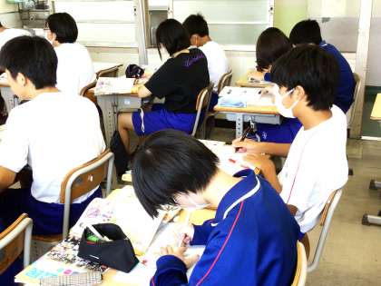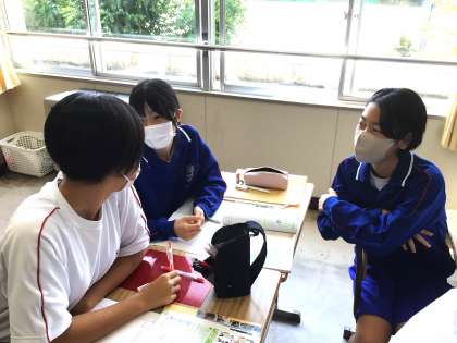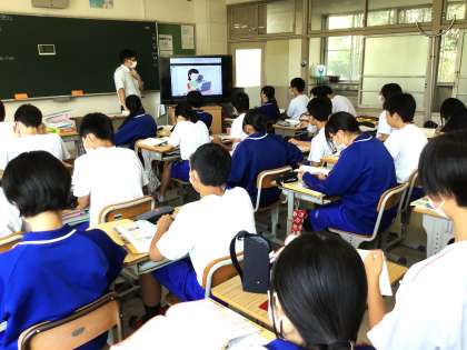 33学級は、社会の「公共の福祉と国民の義務」の授業の様子です。デジタル教科書の資料を見ながら、社会全体の利益を意味する「公共の福祉」について考えていました。