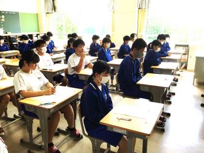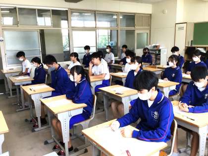 前期期末テスト開始直前の32学級の様子です。