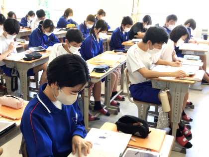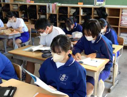 33学級は、国語の「故郷」の授業の様子です。本文を音読しながら、内容を把握していました。