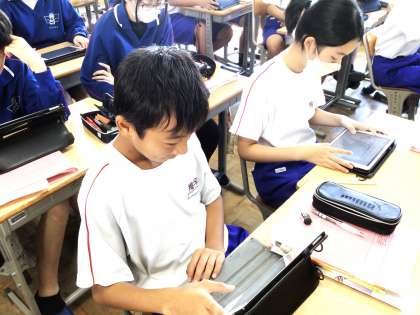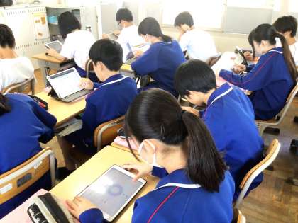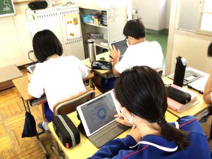 23学級は、国語の授業の様子です。「類義語、対義語」について、キュビナの問題を解きながら、解き方、考え方を確認していました。「1回目は間違えた問題があったけど、2回目は考え方がわかったので全問正解しました」と笑顔が返ってきました。キュビナの問題を繰り返し解くことによって理解が深まることを、この言葉を聞きながら再確認しました。