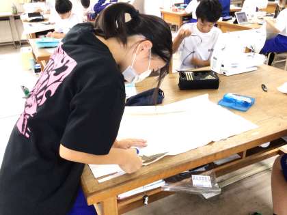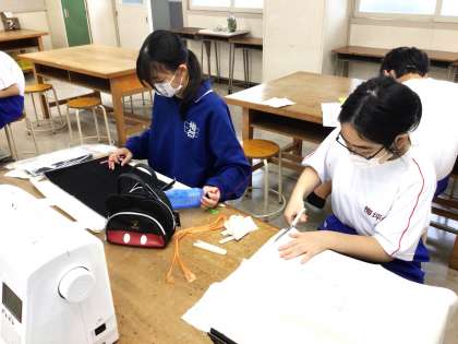 11学級は、家庭科の「バルキーバック制作」の授業の様子です。いよいよ本時から制作です。布をはさみで丁寧に切っていました。本日も裁縫(ミシン)ボランティアの方が参加し、裁縫等の支援を行っていました。ありがとうございます。