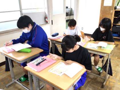 13学級は、国語の授業の様子です。「主語と述語の関係」について、ワークの問題を解きながら、理解を深めていました。