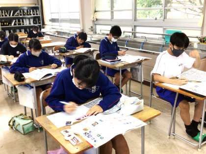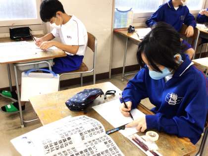 10/8(火) 授業の様子です(1年生) 1 公開日 2024/10/08 更新日 2024/10/08 お知らせ 1年生の授業の様子です。 11学級は、美術の「<デザイン技法>マスキング」の授業の様子です。今日から、この単元に入りました。レタリングを使って、『美』という文字を描いていました。