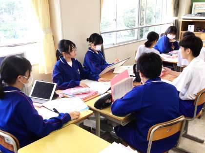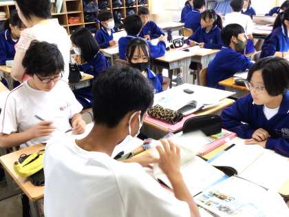 10/18(金) 授業の様子です(1年生) 2 公開日 2024/10/18 更新日 2024/10/18 お知らせ 12学級は、国語の「大人になれなかった弟たちに……」の授業の様子です。「母」の心情について班で話し合い、考えを「まなボード」に記入していました。