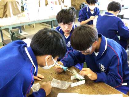 22学級は、技術の「エネルギー変換」の授業の様子です。セパレートトーチ製作に取り組んでいました。一つ一つの作業を慎重に行っていました。