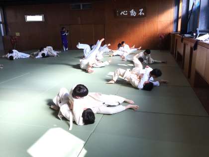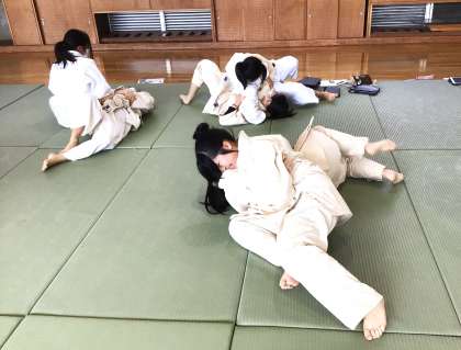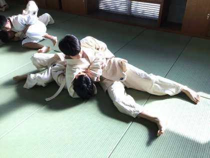 31学級は、体育の「固め技」の授業の様子です。袈裟固のかけ方、返し方の練習を行っていました。