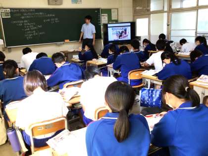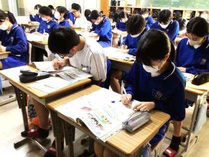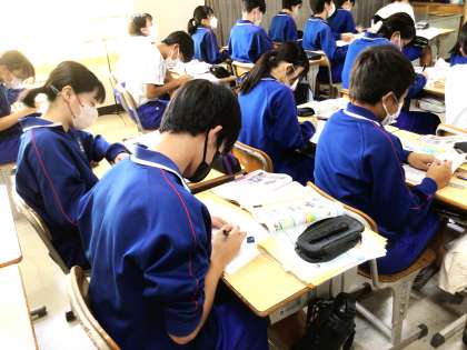 33学級は、社会の「私たちの生活と地方自治」の授業の様子です。大切なポイントをノートにまとめながら理解を深めていました。