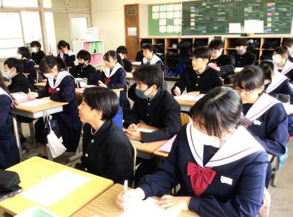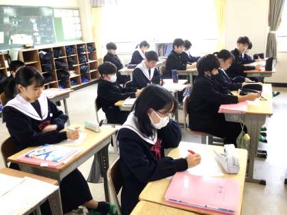 12学級は、国語の「いろは歌」の授業の様子です。現代仮名遣いに直しながら読みの確認をしていました。
