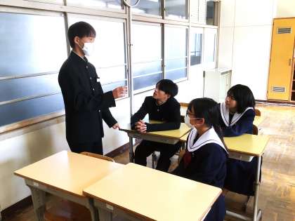 昼の放課、3階のフロアを通ると、2年生がリーダー会(級長・書記)を行っていました。自然教室の成功を目指して活発に意見交換を行うなど、自然教室に対する意気込みが伝わってきました。自然教室が楽しみです。