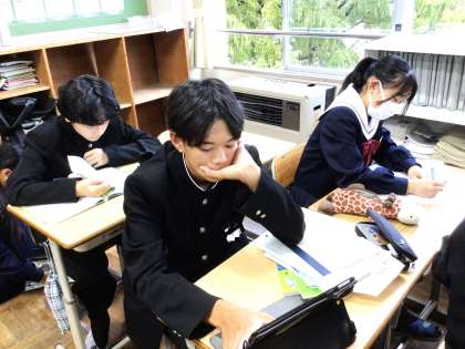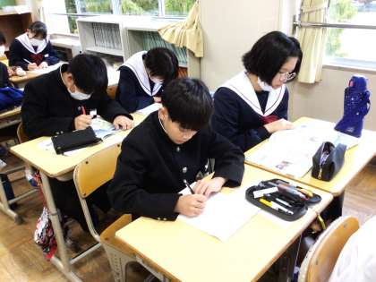 先週より、テスト・教育相談週間が始まりました。朝の学習を行っている様子です。明日からの後期中間テストに向けて、テキストの問題を解いたり、キュビナの問題で考え方を確認したりと、集中して学習に取り組んでいました。