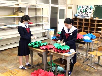 「黒板アート」の活動の様子です。飾りの作成を行っていました。